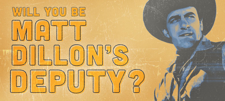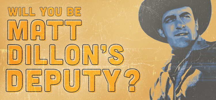 Could it be you? Bank robbers! Horse thieves! Bar brawls and disturbing the peace! Marshal Matt Dillon can use an extra hand keeping outlaws in line. And he’s interviewing candidates for Deputy now. Will you wear the badge! Apply within…