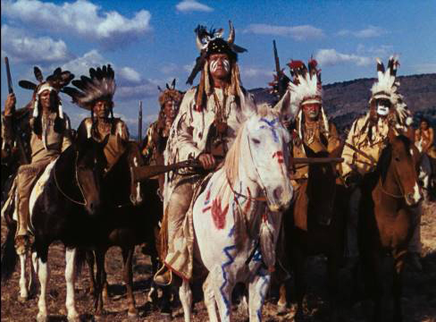 Soon enough, trouble comes calling when one of the men is killed by an unknown band of Indians. Shaw doesn’t believe the Indians are to blame, so he rides out to investigate. Soon, he discovers that it’s not a gang of Indians who are responsible…it’s his old gang disguised as Indians!