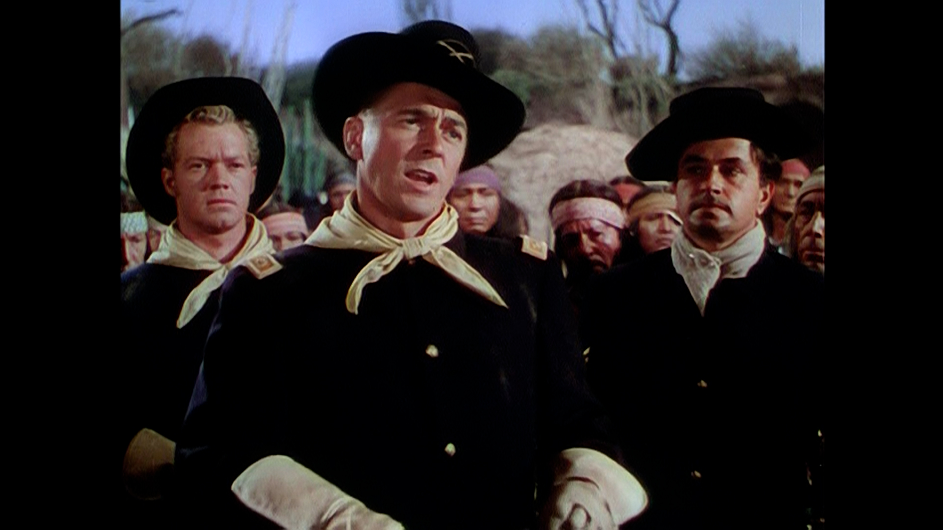 If cavalry Westerns are often as stiff as an officer’s uniform, The Last Outpost is refreshingly lively and entertaining, thanks in part to director Lewis Foster, who excelled in both action and comedy, directing some of Laurel and Hardy's funniest films, and winning an Oscar for his writing on Mr. Smith Goes to Washington. (Note: The Last Outpost was re-released in 1962 as Cavalry Charge.) Reagan plays Confederate Captain Vance Britton with charm and a confident swagger. Wearing blue is Reagan’s brother, Union Colonel Jeb Britton, played by Bruce Bennett, the interloper on Bogart and the other gold prospectors in Treasure of the Sierra Madre. The brothers’ conniving against each other provides much of the fun. The woman who Reagan—the cad!—left behind, who turns up at the fort, married to the weasel who runs the trading post, is lovely Rhonda Fleming; she and Reagan made such a good pair they’d do three more films together: Hong Kong, Tropic Zone, and Tennessee’s Partner.